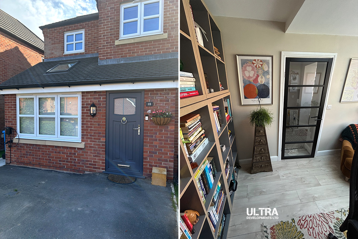 Baroncroft Road Porch Our sister company, Ultra Developments, were recommended to the customer by a past client. They were grateful to supply and install a new UPVC rear porch and utility room. They also installed new windows and doors and new insulated rubber roof with flat glass velux roof light. Our customer was