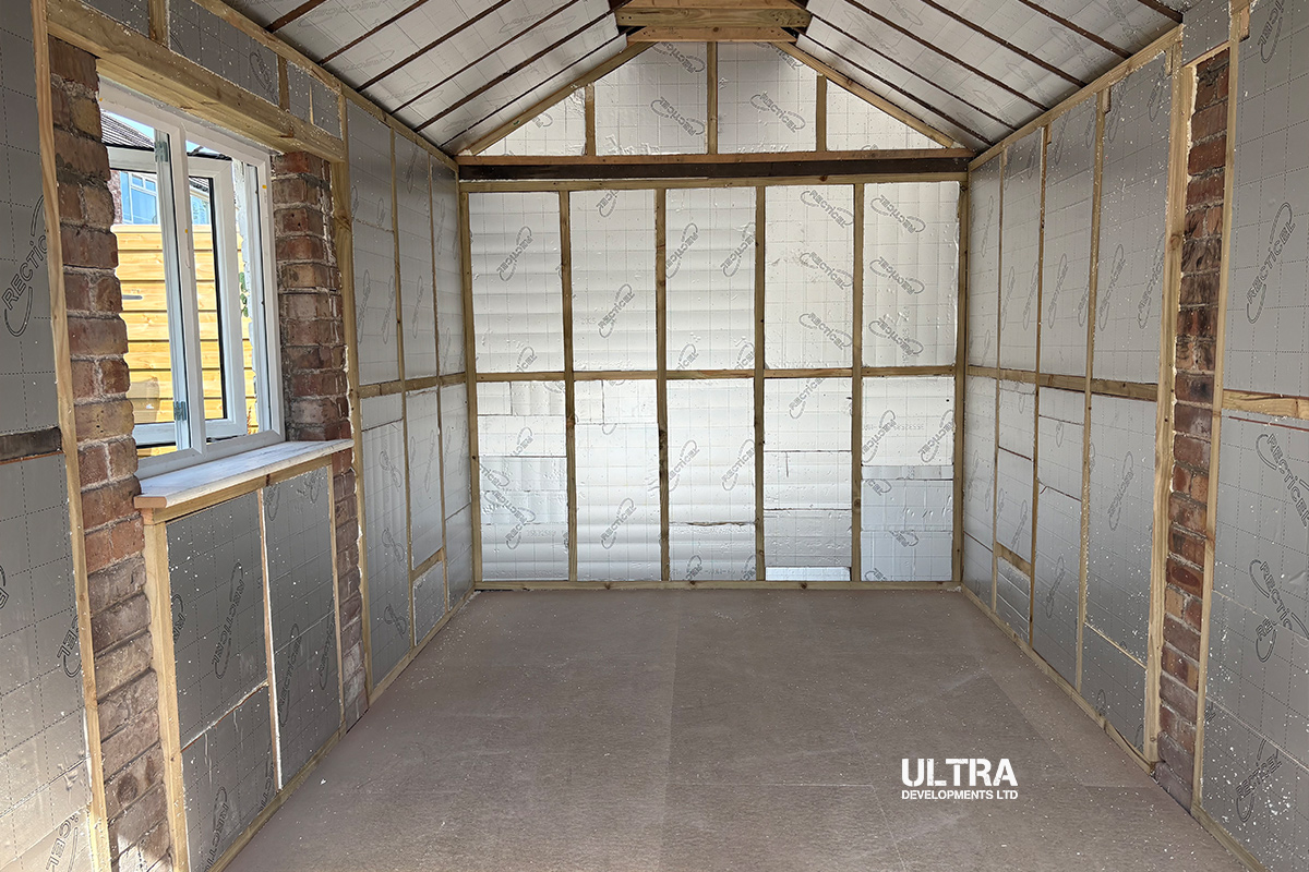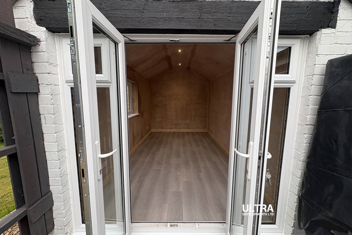 Another garage conversion completed by our sister company, Ultra Developments! We’ve been on a great run with these projects lately, and this latest one was a detached garage located at the rear of the garden. We installed new UPVC doors and a window, fully plastered the interior, added modern spotlights, and laid new flooring — leaving the space ready for the customer to enjoy as a stylish and functional addition to their home.